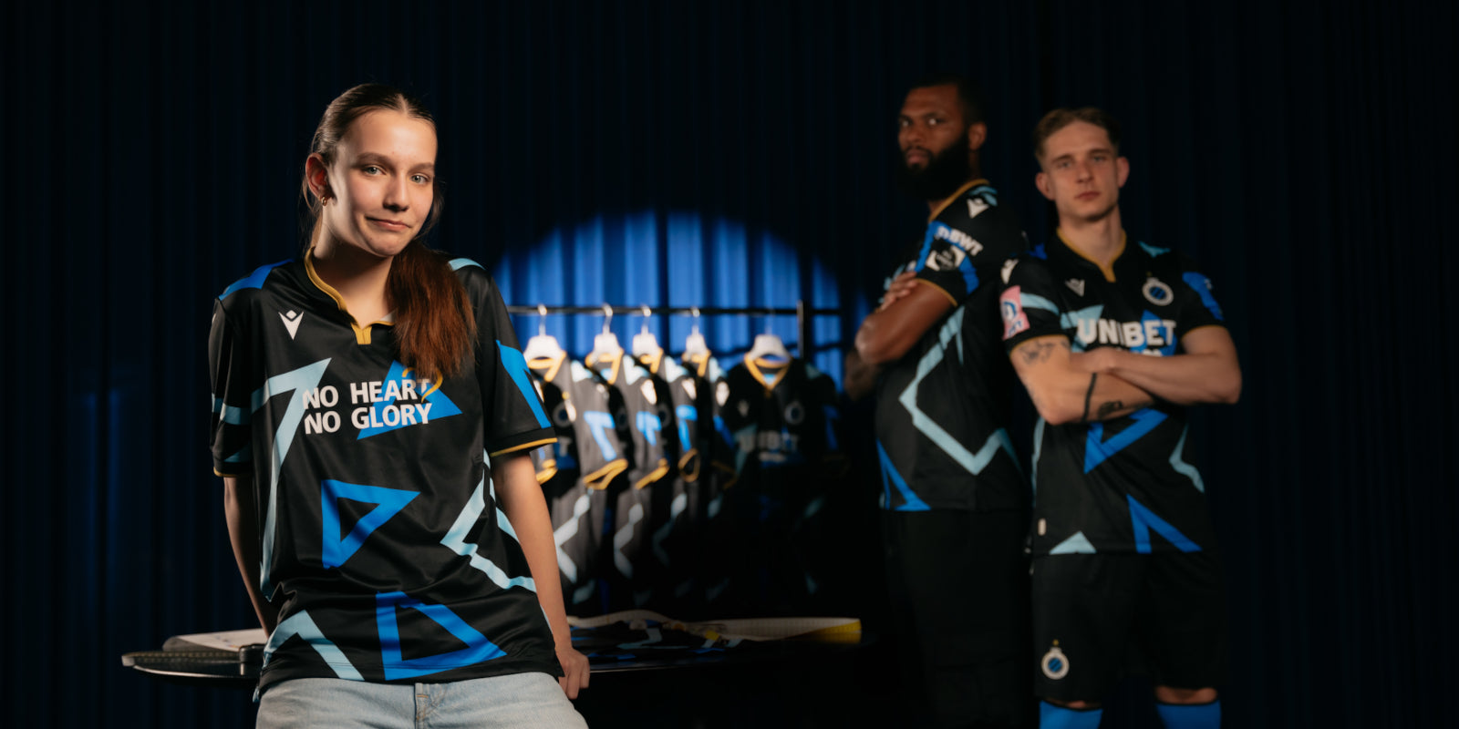 Standaard geleverd met bedrukking van partners No Heart No Glory (kids), Unibet & Allianz.