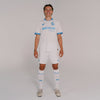 Het nieuwe away shirt straalt eenvoud en elegantie uit in licht zilver met helblauw als detailkleur. De laurierkrans keert subtiel terug in zowel de nek als de mouwen. Achteraan de nek staat, ondertussen traditioneel, "No Sweat No Glory" gedrukt, een herinnering dat winnen in ons DNA zit. Dankzij Castore's AERTEK technology, heeft de replica versie een beter ademend textiel en zal het lichter voelen tijdens het sporten. Een 3D badge siert de borst van het shirt.
